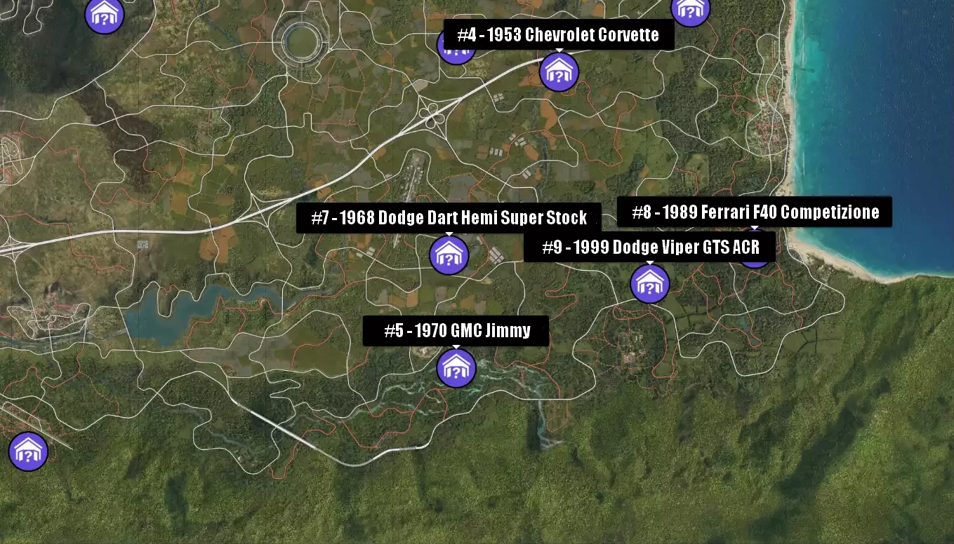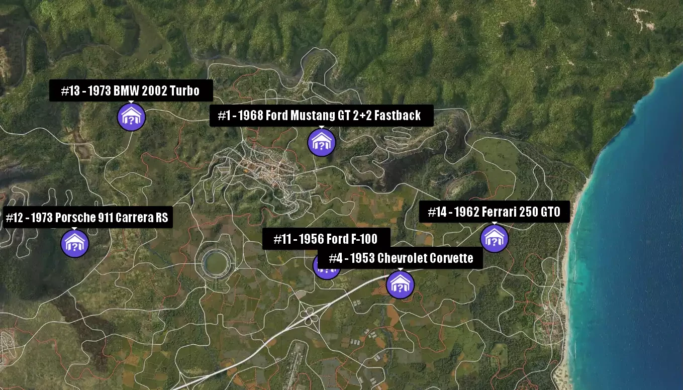 Voici la liste complète des voitures à trouver et leur localisation précise pour ne plus jamais chercher au hasard.