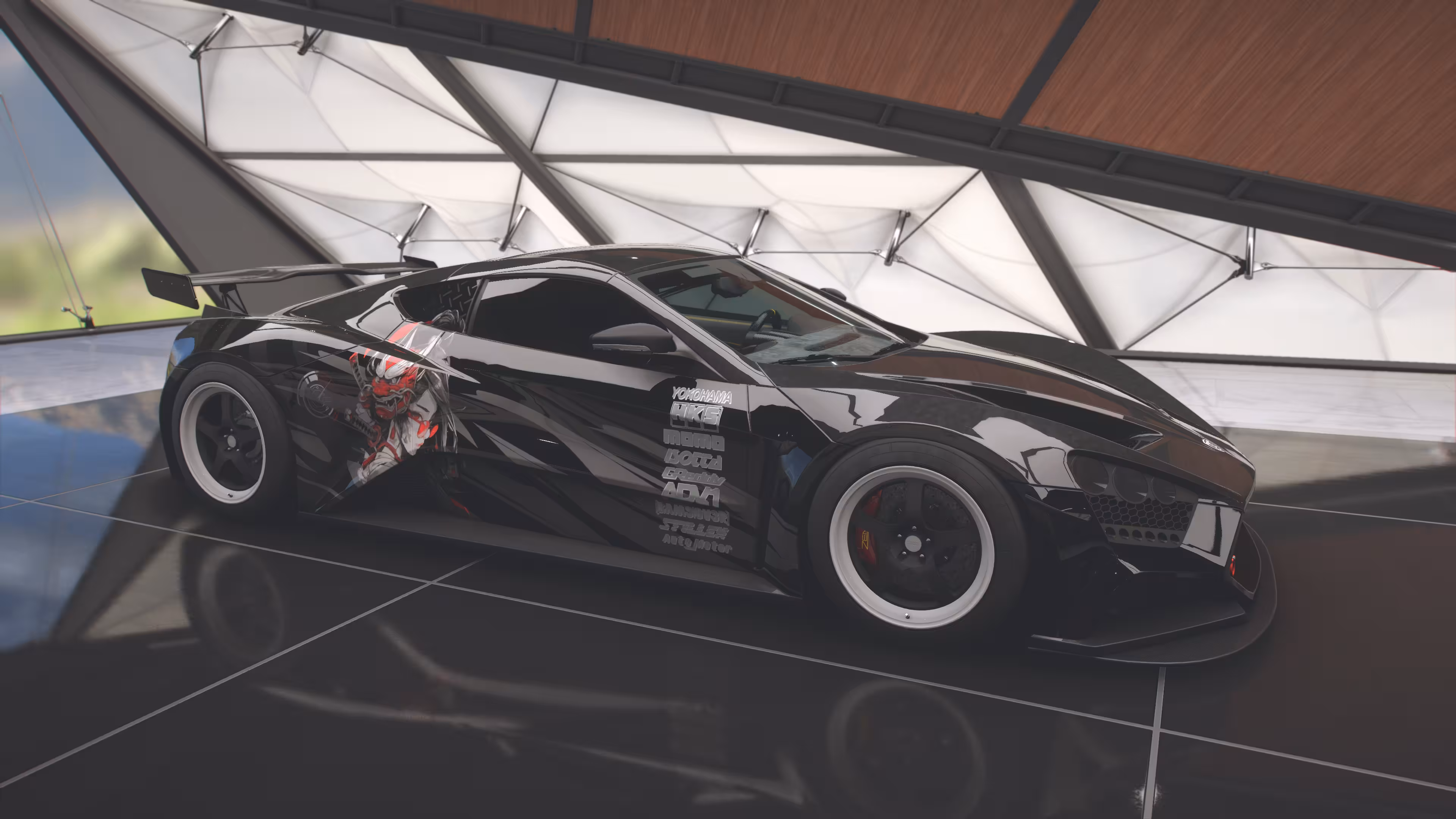 Ce réglage sur mesure, swappé par un huit cylindres de 6,2 L et toutes ses améliorations pour atteindre un couple de 1300N.m, est tout simplement monstrueux. Son kit Rocket Bunny lui va comme en gant et améliore considérablement son style agressif. Elle est l'une des première à bénéficier de la livrée exclusive à l'effigie de Gam3 Ov3r.